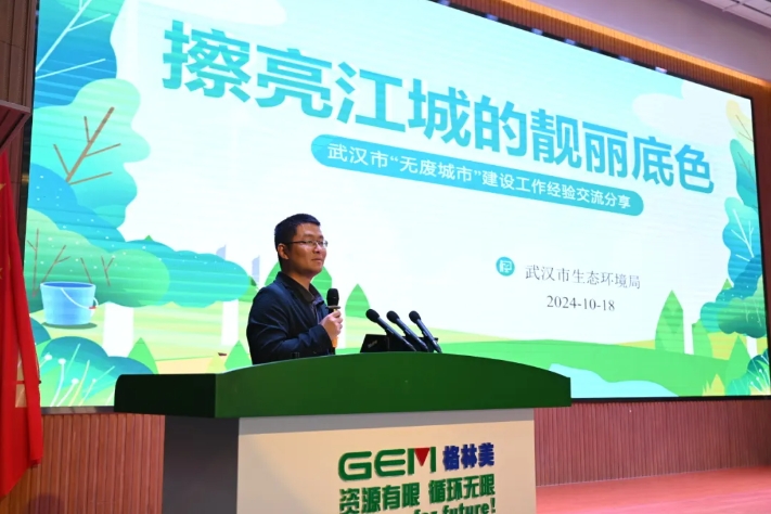 土壤生态环境处党支部副书记、副处长翟显之向参观人员介绍了武汉市无废城市建设背景、成效、经验做法和规划展望。2022年4月,武汉市获批成为国家第二批“无废城市”建设城市,市人民政府正式印发《武汉市“无废城市”建设实施方案》,明确了9个方面42项重点任务。近年来,全市工业绿色低碳发展成效进一步显现、农业绿色发展基础进一步夯实、绿色低碳生活理念进一步巩固、建筑领域绿色水平进一步提升、危险废物处理体系进一步完善、固体废物管理机制进一步健全,取得了一定成效。全市将更进一步推进“无废城市”建设,明确中长期武汉市“无废城市”建设的总体目标和策略,让无废理念深入人心。