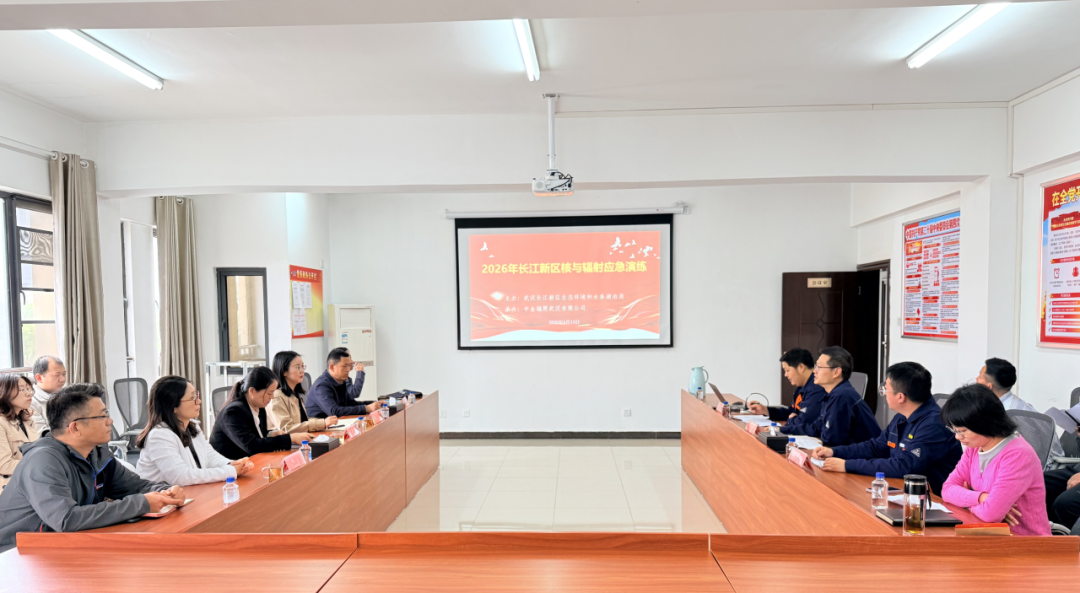 为深入贯彻落实国家、省、市关于辐射安全与应急管理工作的部署要求,全面检验新区辐射环境风险防控能力、应急响应流程和部门协同处置水平,长江新区环境水务局牵头组织,在中金辐照武汉有限公司开展2026年度长江新区核与辐射突发事件应急演练。省生态环境厅核与辐射监测技术中心主任王玲玲、总工李少婷,市生态环境安全中心分管负责人现场参观。