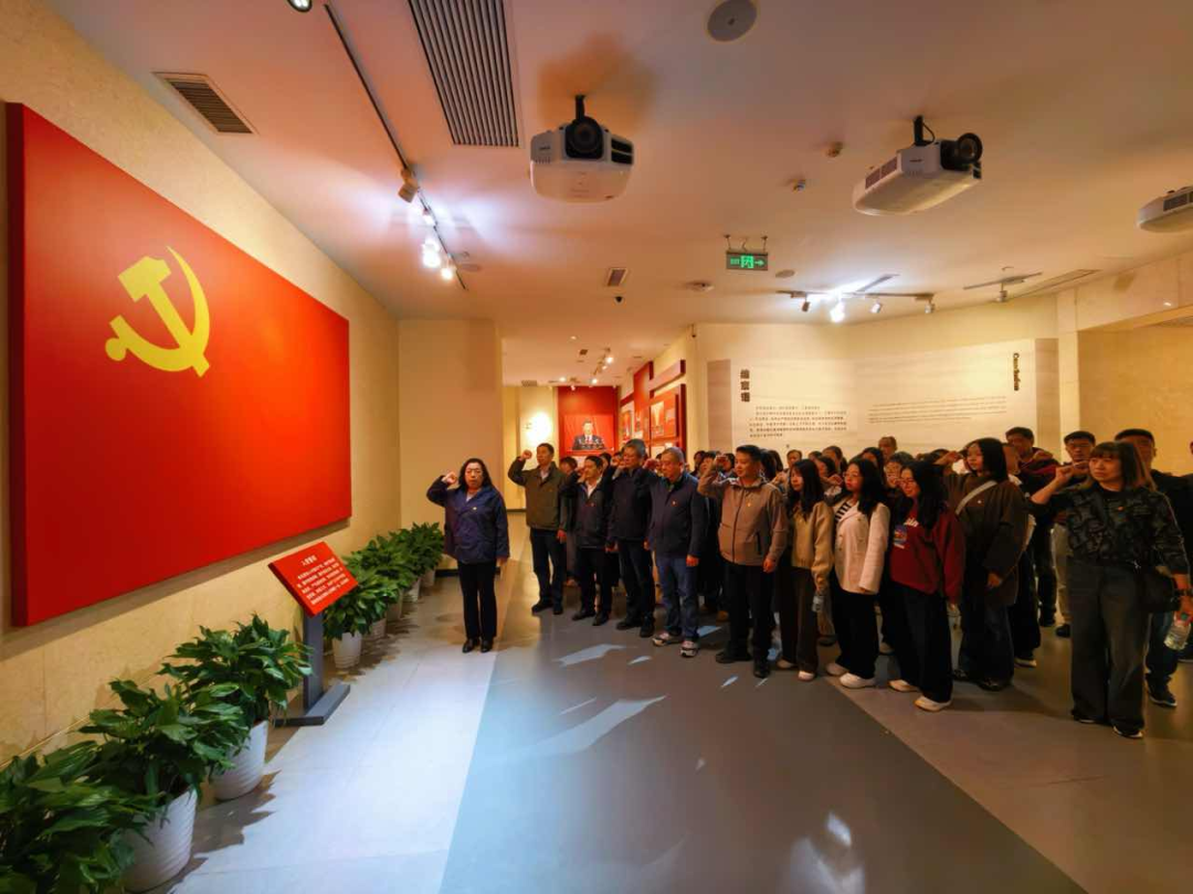 在中国共产党纪律建设历史陈列馆大厅,全体党员面向党旗庄严宣誓,重温入党誓词,铿锵有力的誓言回荡现场,进一步坚定了党员干部不忘初心、牢记使命的政治信念。