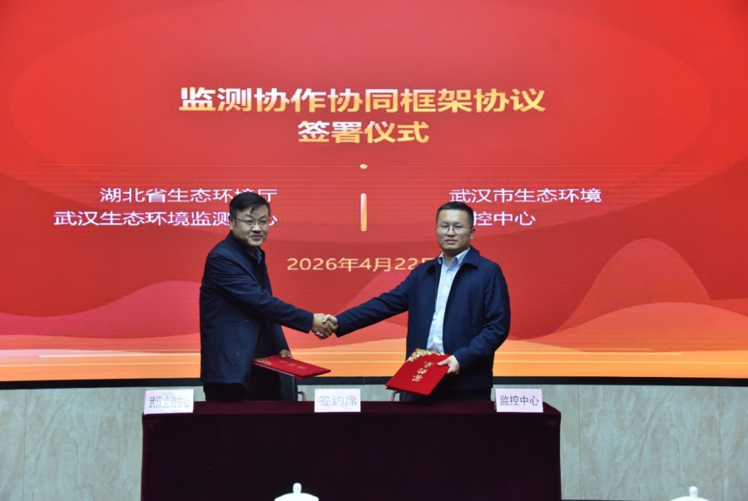 为加快构建现代化生态环境监测体系,深化省市生态环境监测力量联动融合,在2026年4月22日第57个世界地球日,湖北省生态环境厅武汉生态环境监测中心与武汉市生态环境监控中心监测业务协作协同框架协议签署仪式在武汉市生态环境局顺利举行。