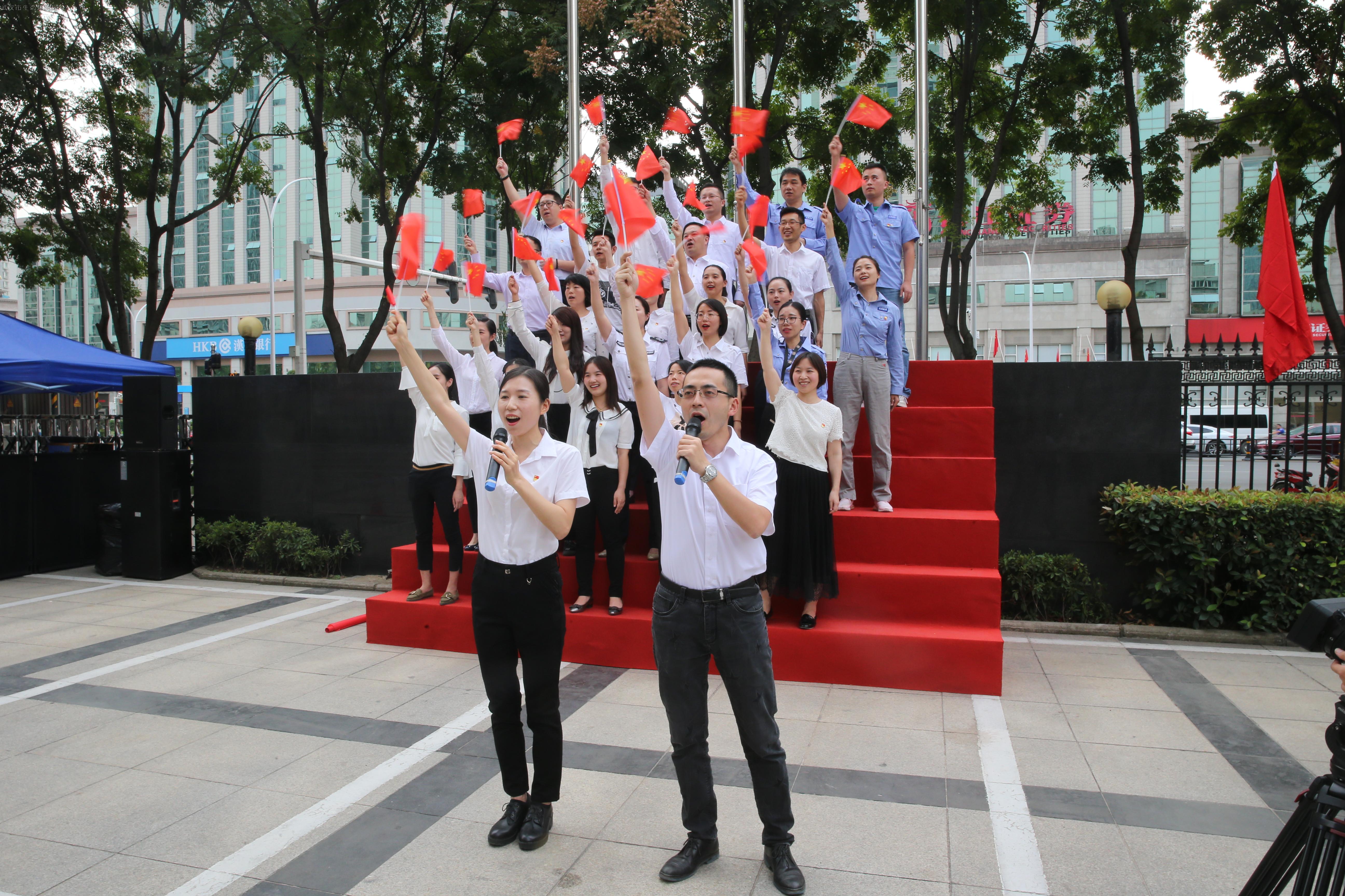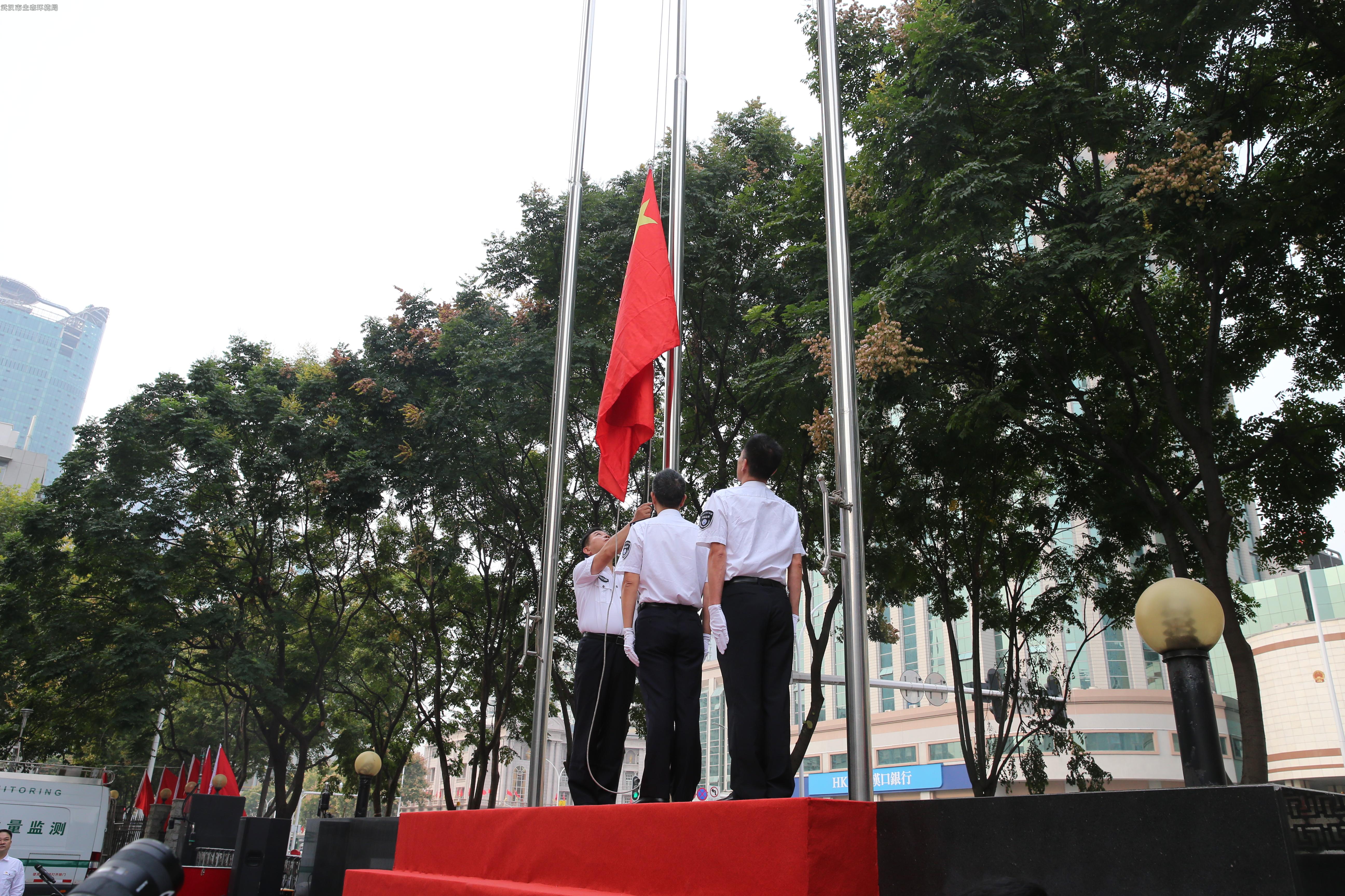 9月26日,繁忙的新华路与北湖交叉路口,响起雄壮的国歌,一面五星红旗徐徐升起,行走的路人停下凝望。市生态环境局办公楼前,300多名环保人齐聚一堂,开展庆祝中华人民共和国成立70周年“升国旗、迎军运、明誓言”系列活动。