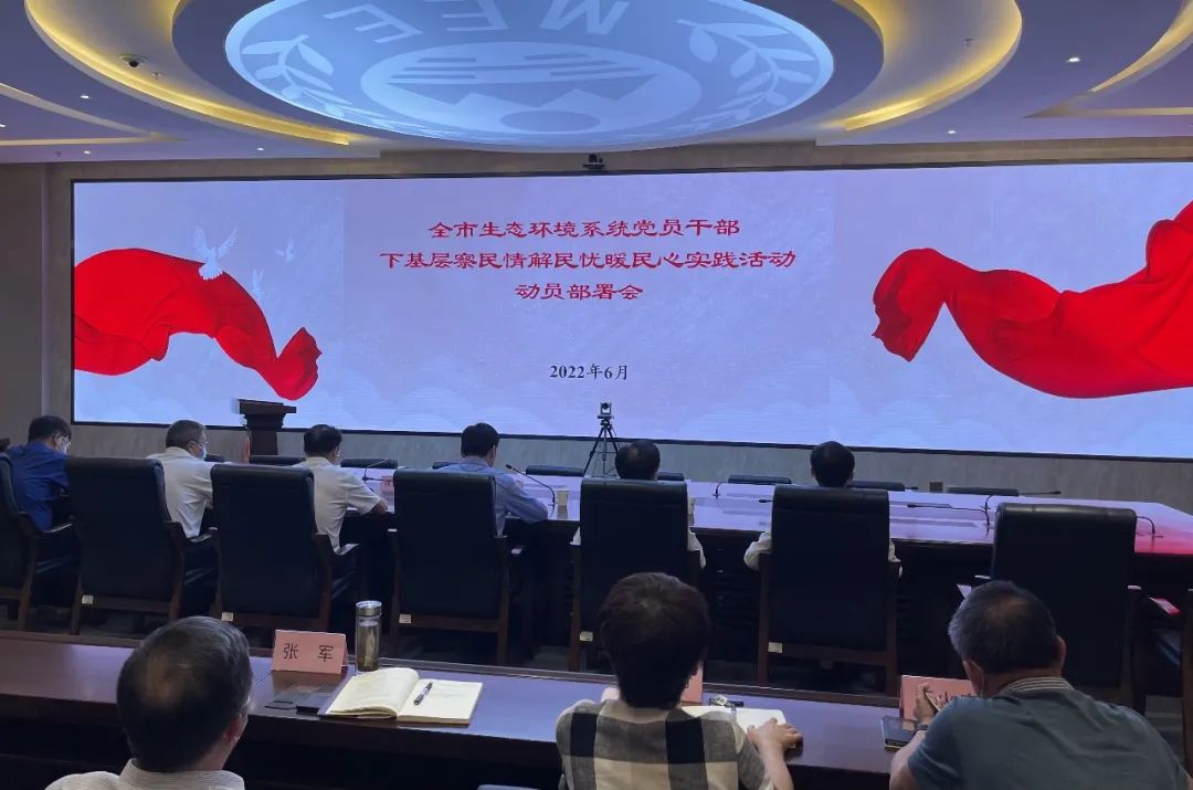 6月1日上午,武汉市生态环境局召开全市生态环境系统党员干部下基层察民情解民忧暖民心实践活动动员部署会。会议传达学习了省委、市委和省生态环境厅关于开展实践活动的部署要求,对全市生态环境系统开展实践活动进行安排部署,局党组书记、局长张朝辉作动员讲话。