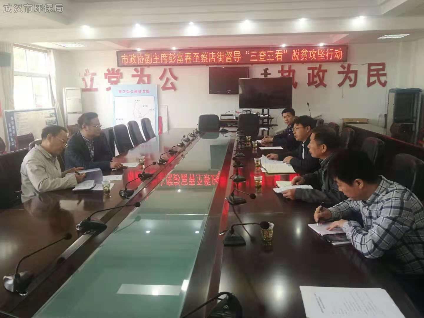 于10月13日,市政府副主席彭富春赴黄陂区蔡店街调研督导“三查三看”脱贫攻坚大行动,市环保局参加调研督导活动。