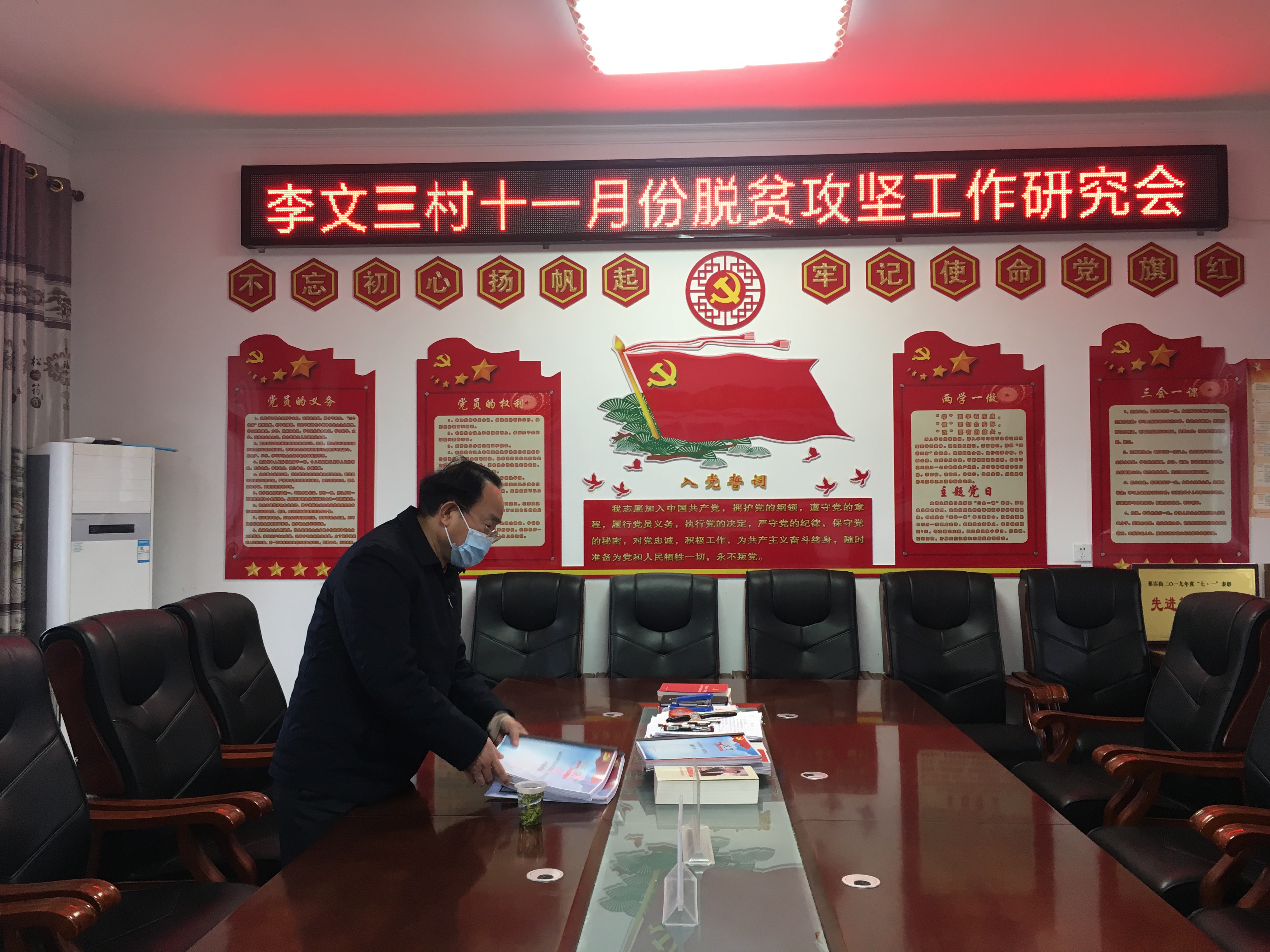 11月24日,张作波副局长一行走访调研黄陂区蔡店街李文三村等3个村,查阅扶贫相关台账资料,访村情、听民意、送问候,进一步促进乡村振兴和绿色产业发展情况。