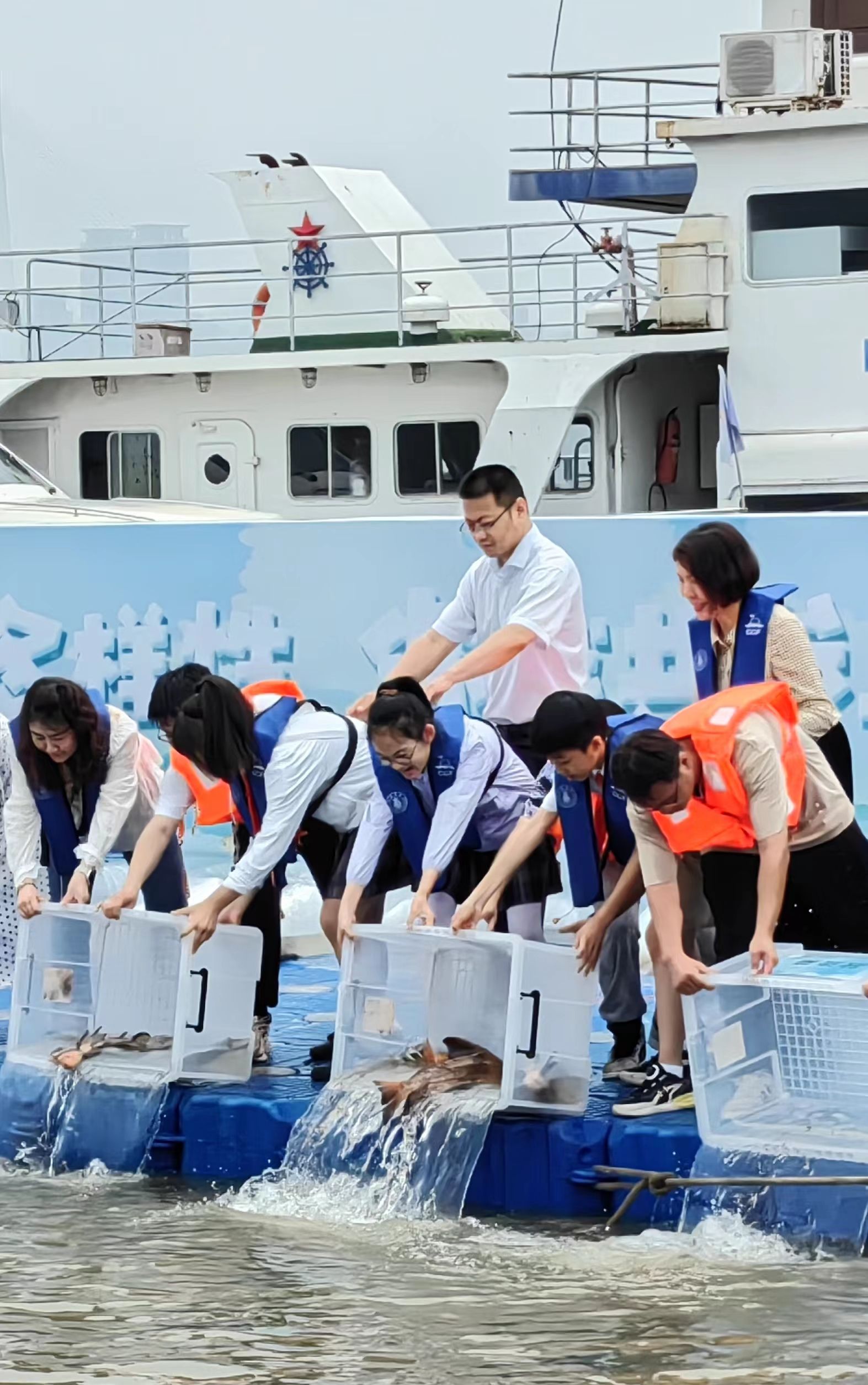 近年来,武汉市坚持共抓大保护、不搞大开发,聚焦生物多样性保护,全面落实长江“十年禁渔”。人工增殖放流,是巩固和扩大禁渔成果、保护长江生物多样性的实际行动。当天参加活动的嘉宾以及环保志愿者、市民代表来到长江边开展增殖放流活动,共计5万余尾鱼“游”入长江,包括胭脂鱼、青鱼、长吻鮠[wéi]等鱼类。