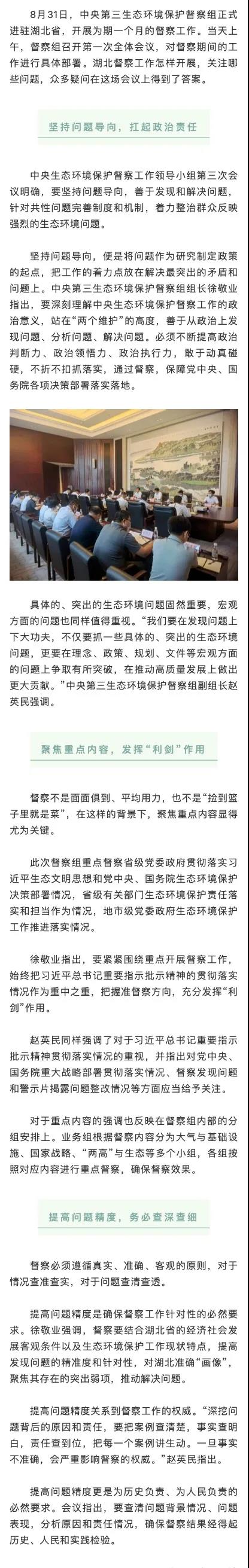 督察组怎么发现问题?中央第三生态环保督察组进驻湖北当天确定了这些重点