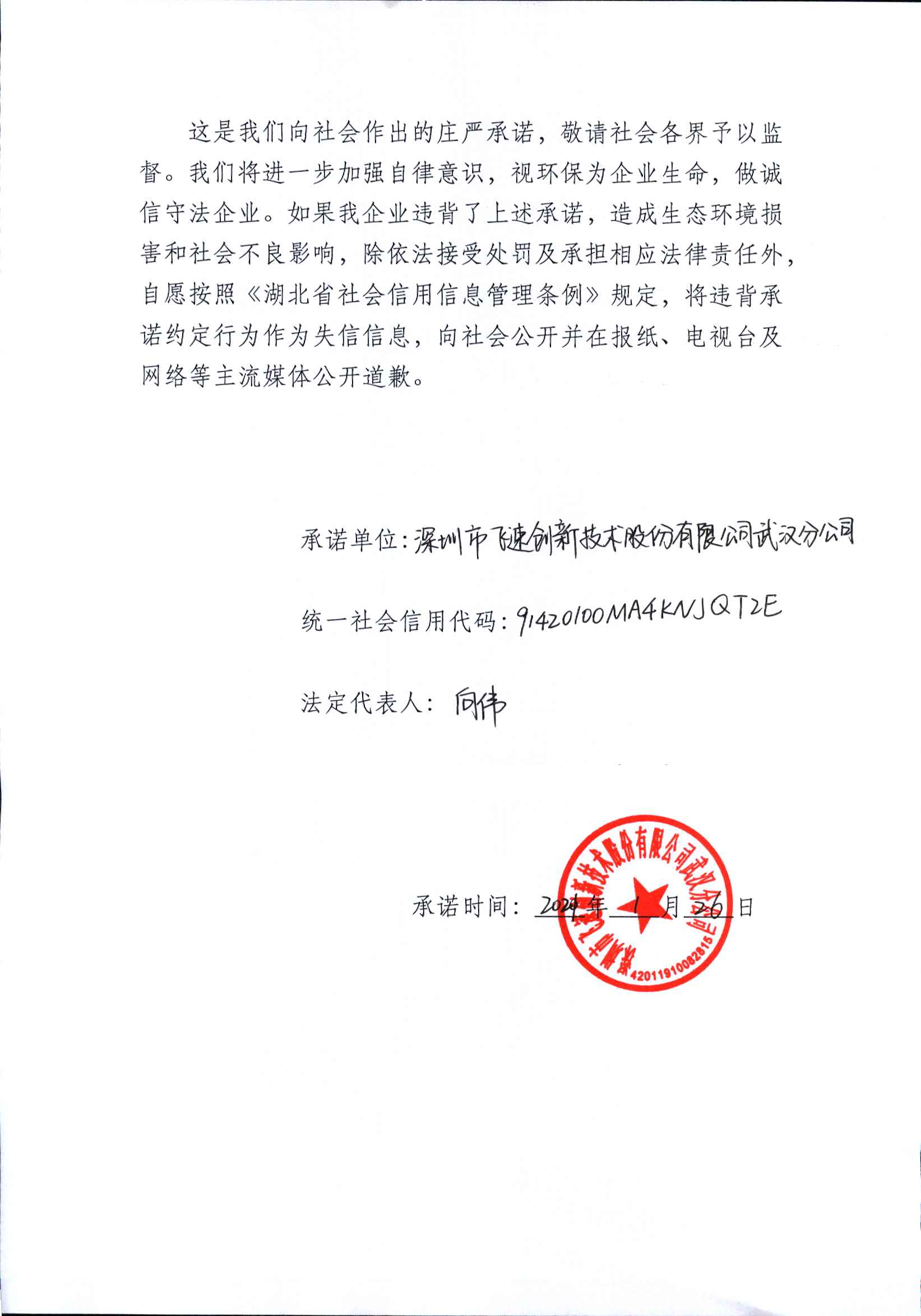 深圳市飞速创新技术股份有限公司武汉分公司信用承诺书