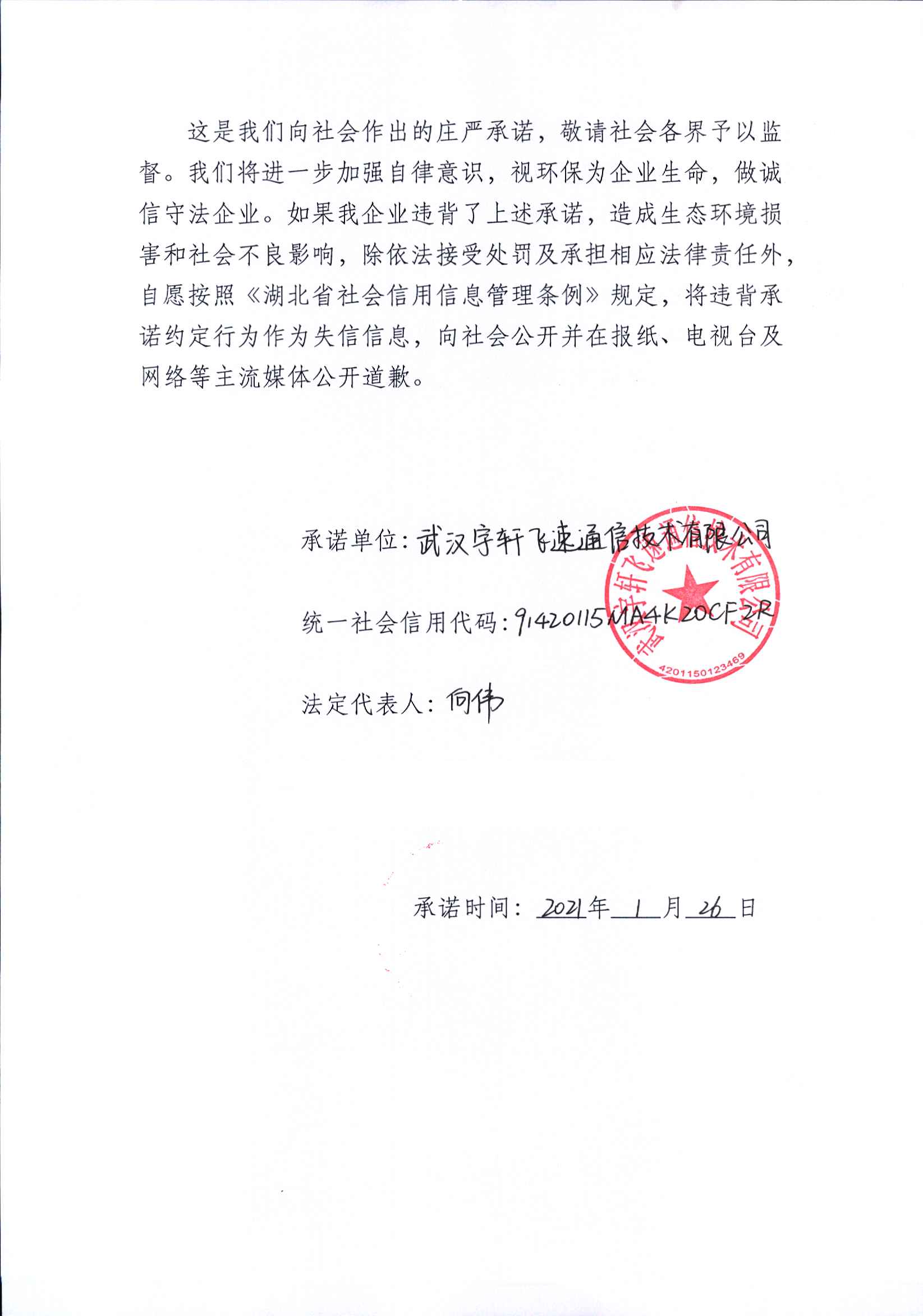 武汉宇轩飞速通信技术有限公司信用承诺书