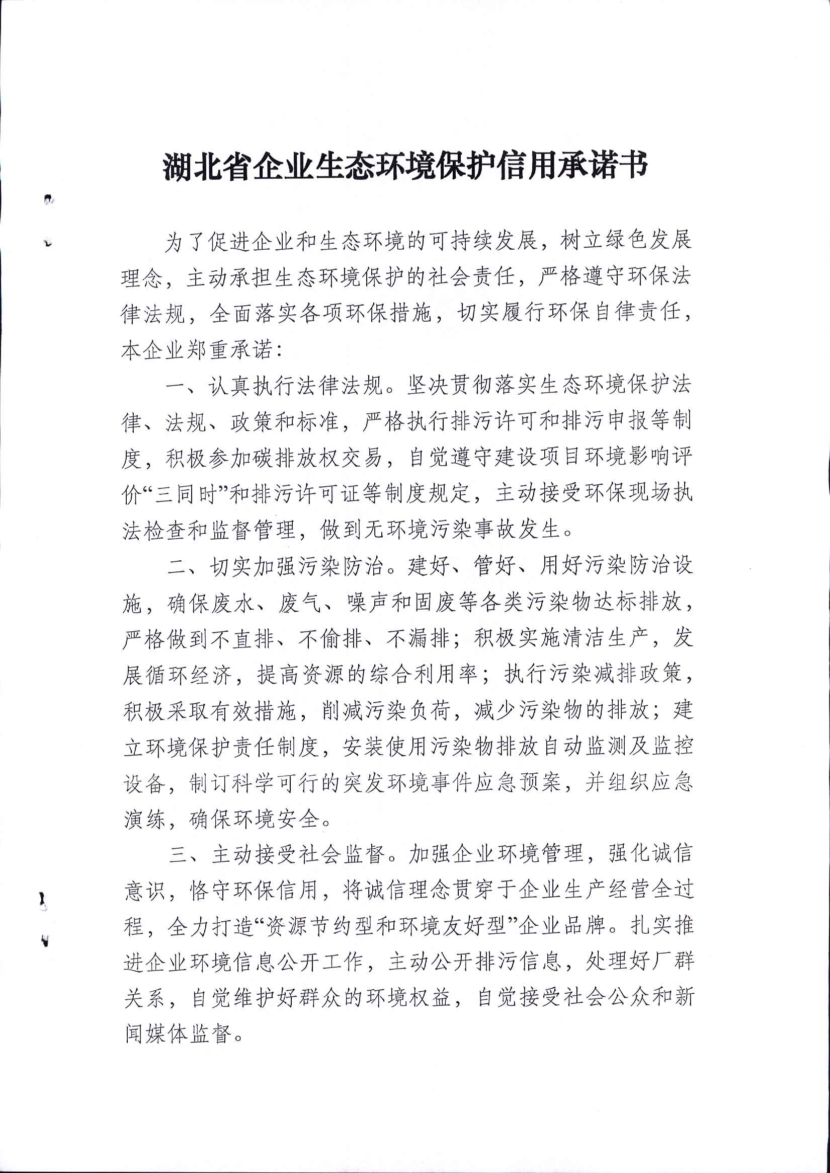 企业信用承诺书