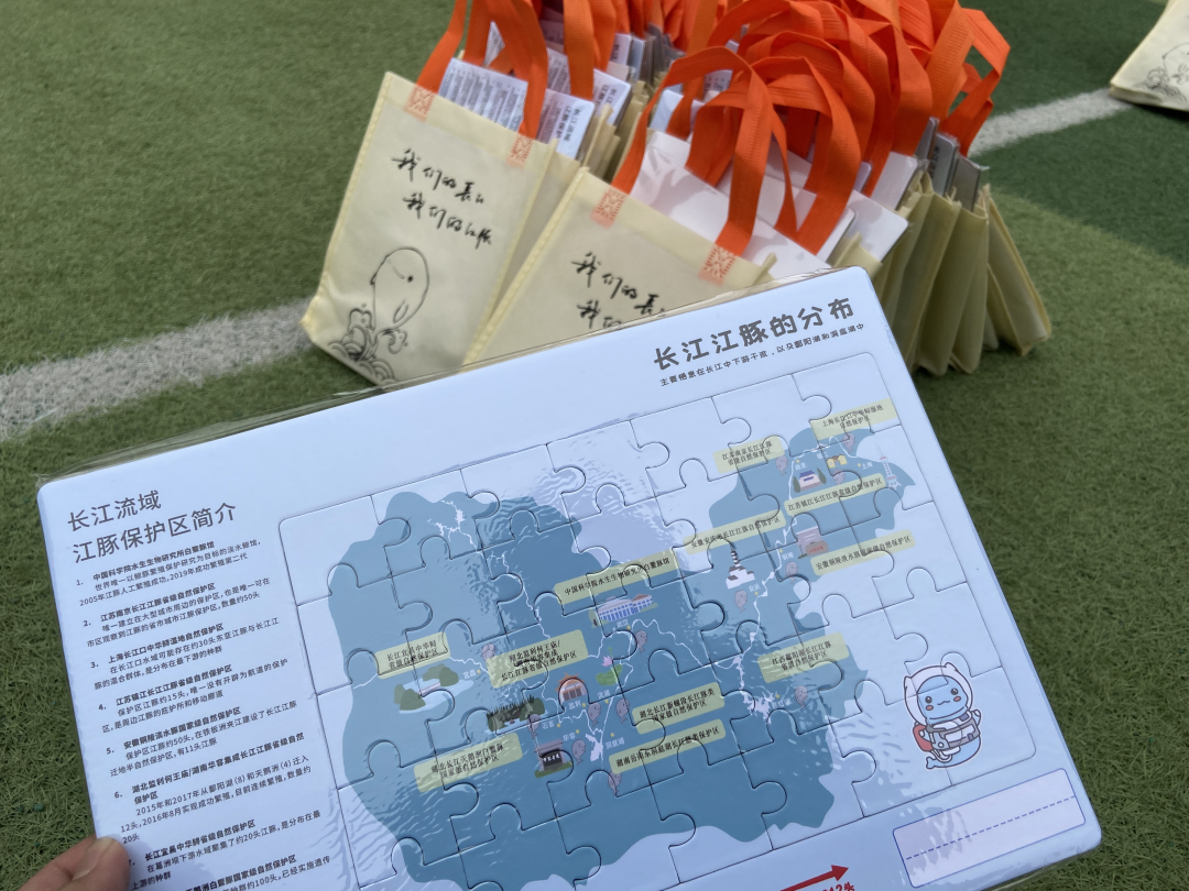 如何用实际行动保护江豚呢?在此次公益活动中,老师们指导同学们搜集整理废旧书本杂志,并装进环保袋,置换成江豚的食物,为保护江豚、保护长江生态、创建“无废城市”,留住江豚美丽的微笑贡献出自己的力量。