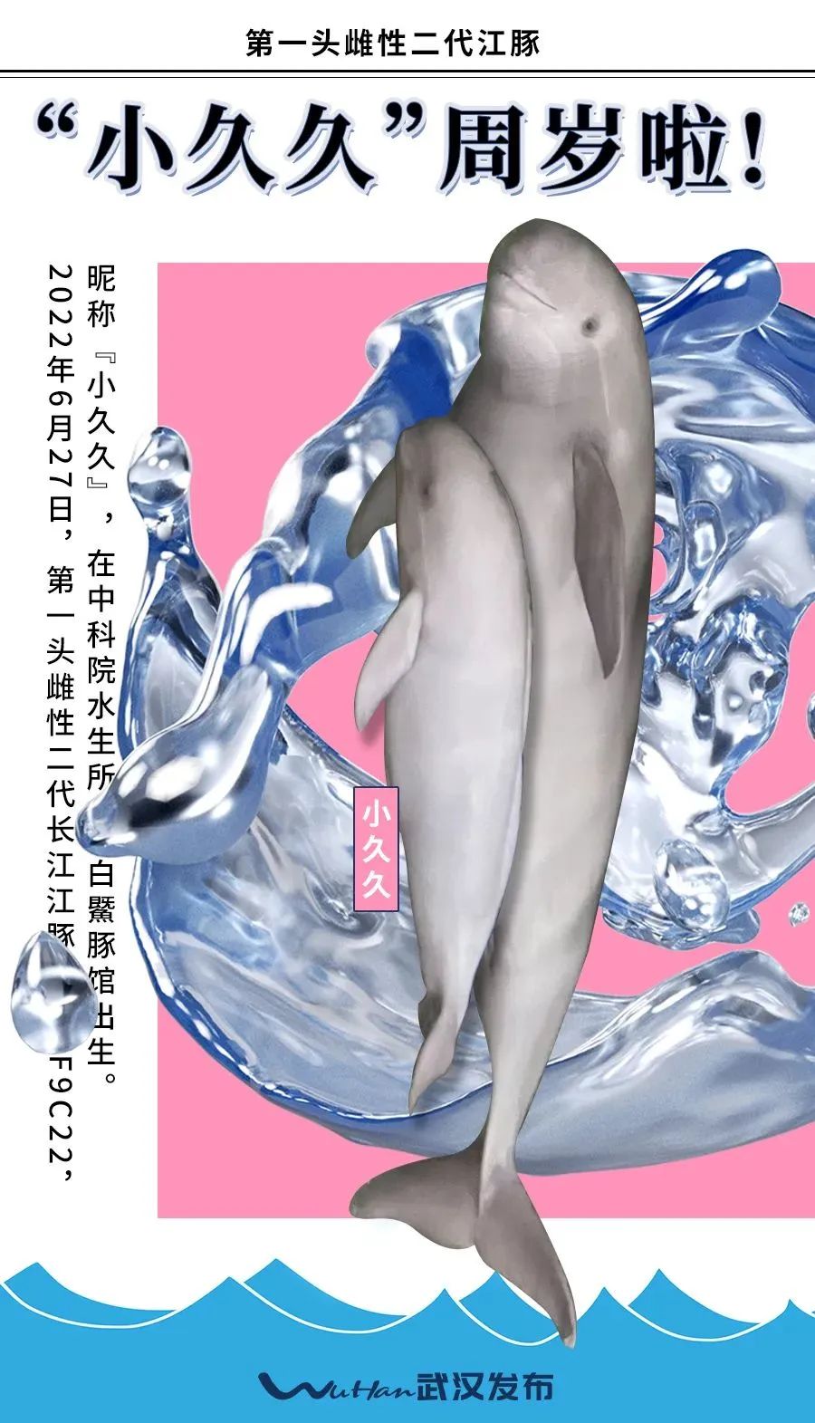 为让公众进一步了解和保护长江江豚,促进全社会共同参与长江生态保护行动,在武汉市农业农村局的指导下,武汉白鱀豚保护基金会联合新华社等单位,在“小久久”出生时发起了“见证长江江豚分娩”科普公益行动,全球首次公布长江江豚分娩全过程,超过2亿网民在线陪产“江豚宝宝”。毫不夸张地说,“小久久”一出生开始就是豚类第一“网红”。(点击看报道>>>欢迎“F9C22”!长江江豚“英雄母亲”再添丁)