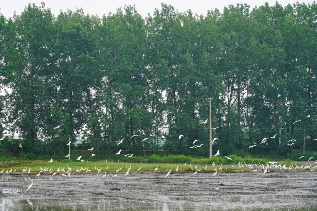 近年来,旧街街道加强耕地保护,守牢粮食安全底线,加快推进高标准农田建设,打造绿色生态农业模式,农村生态环境不断改善,吸引了大批白鹭在此栖息,农忙时期田间地头白鹭飞舞,和稻田、青山、绿水、蓝天构成了一道生机勃勃的生态风景线。
