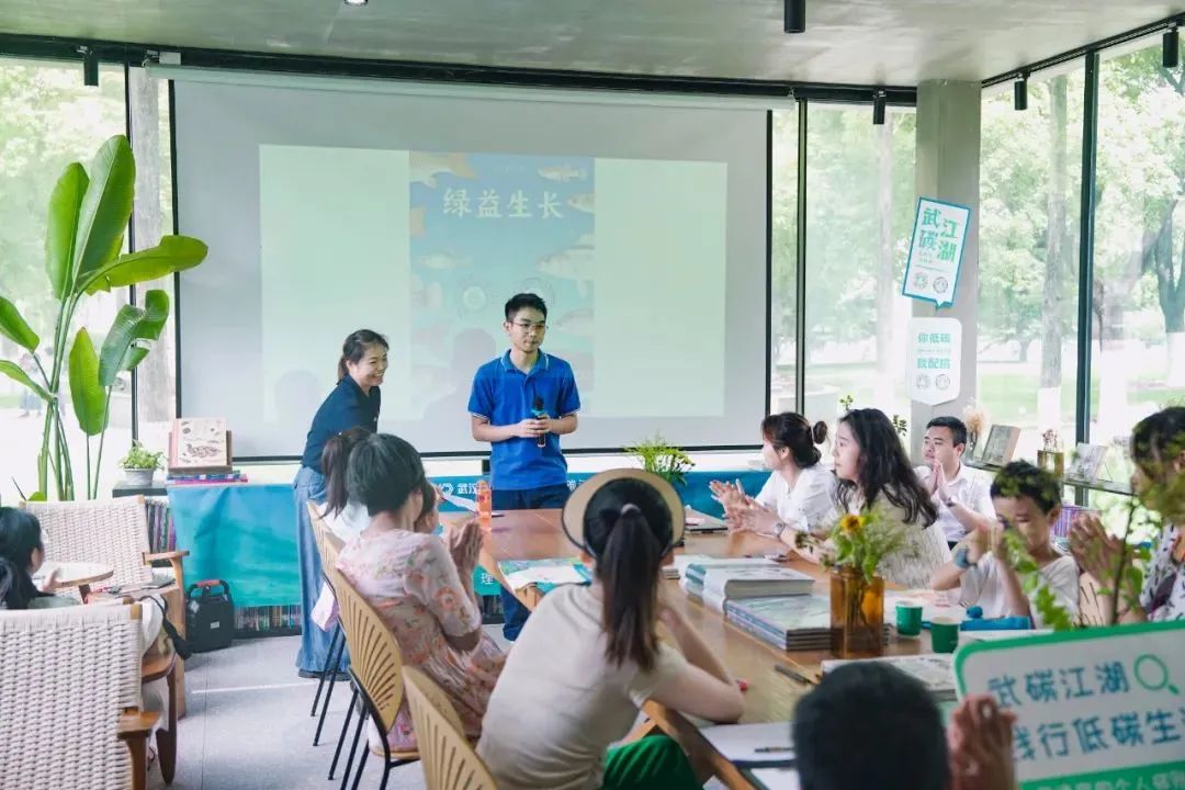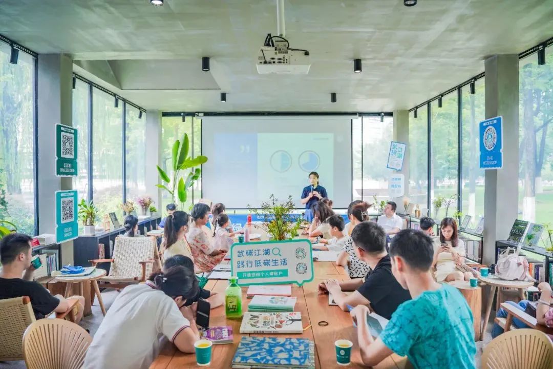 当天,在武汉市生态环境局、北湖街道办事处的指导下,武汉碳普惠管理有限公司联合湖北省长江生态保护基金会在西北湖绿化广场的德芭与彩虹书店开展低碳环保知识宣讲活动,科普碳普惠和长江流域生态环境保护知识,唤起市民践行绿色低碳生活方式的行动自觉,与对环保公益项目的关注。