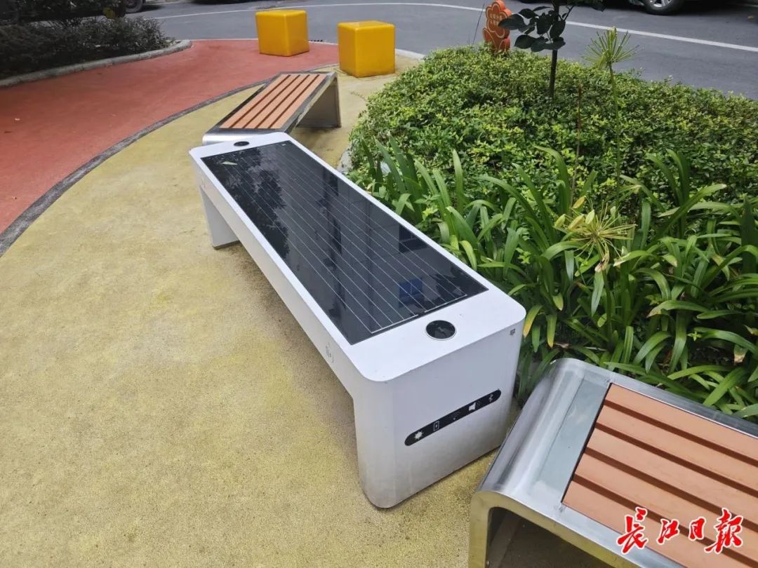 可充电、可联网、可播放音乐的光伏智能座椅。长江日报见习记者 陈星雨 摄