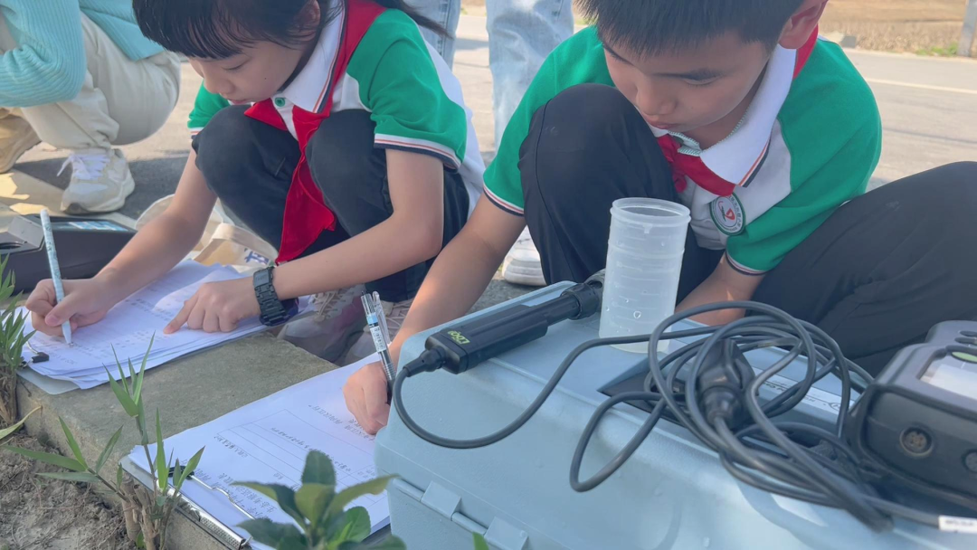 我是来自四(4)中队的余绍颖,这次考察活动中,我负责取水、测透明度和水的流速。大家知道怎么来测量江水的流速吗?用苹果测量。在江边标注一个10米长的距离,把苹果丢到江中,记录下苹果通过10米需要的时间。我们知道时间乘速度等于距离,通过计算,我们可以轻而易举的知道水的流速了。这是我第一次把数学运用到科学考察中,我们测量了8个点位,通过数据比较和分析,我们发现仙桃汉江大桥下的水流最快,达到了1米/秒,是所有观测点水流最快的。