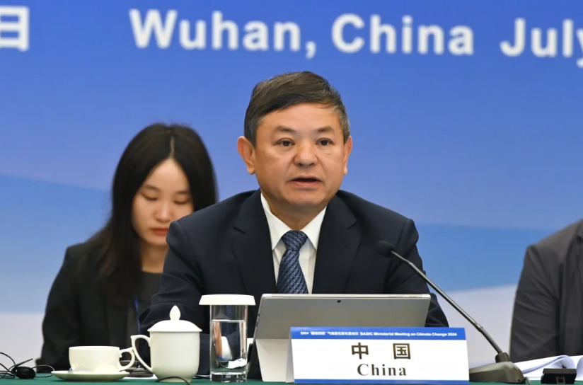 7月21日,2024年“基础四国”气候变化部长级会议在湖北武汉召开。生态环境部部长黄润秋出席会议、致辞并作主题发言。生态环境部副部长赵英民主持会议。南非森林、渔业与环境部部长乔治,巴西环境和气候变化部副部长托尼出席会议,印度环境、森林和气候变化部联合秘书尼莱什线上出席会议。