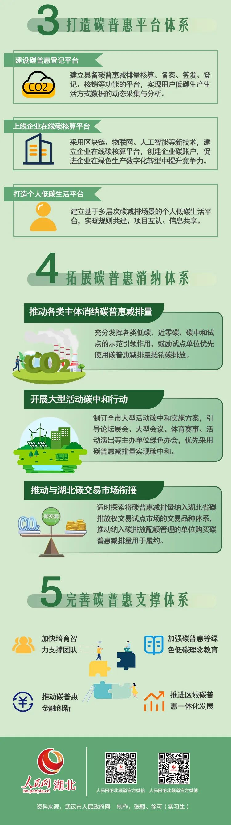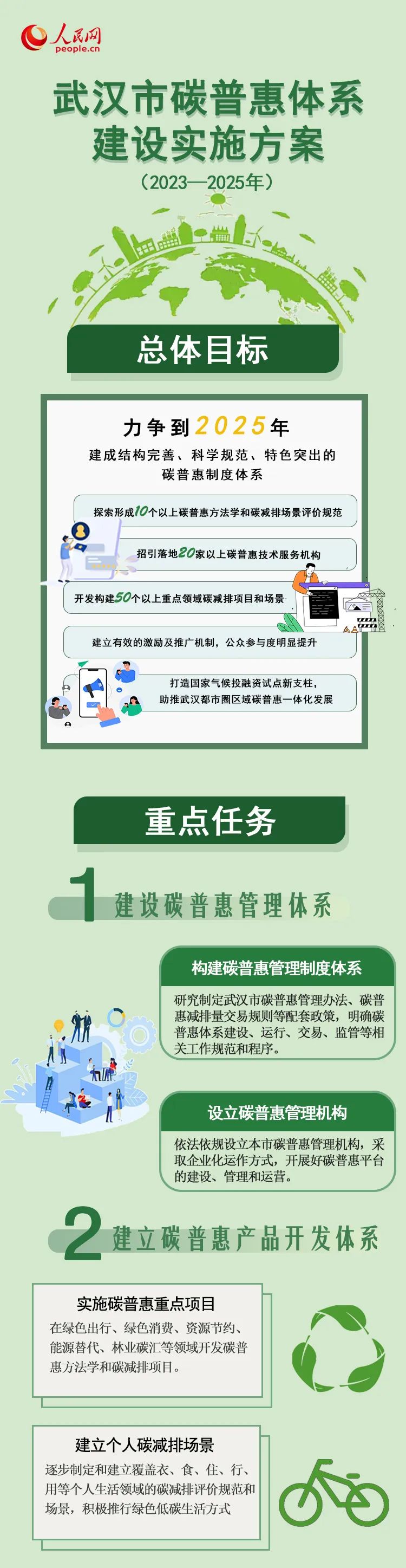 2023年4月,武汉市人民政府办公厅印发《关于武汉市碳普惠体系建设实施方案(2023—2025年)的通知》,计划用3年时间为广大居民谋取“碳权益”。武汉组建了全国首家专业运营碳普惠的国有企业——武汉碳普惠管理有限公司,于2023年6月上线公众低碳生活平台“武碳江湖”,利用数字化的技术手段和科学的计算方法,全面记录用户在日常生活中的低碳行为轨迹。