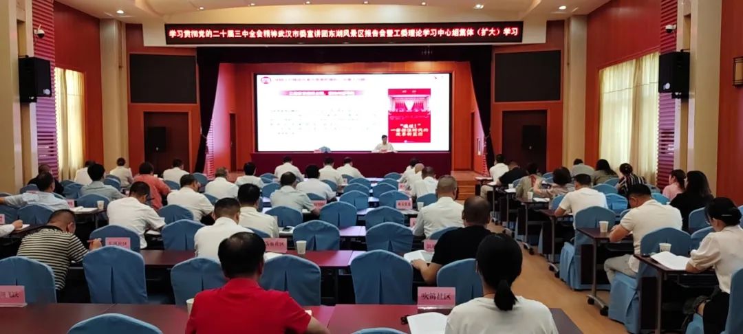 8月22日,学习贯彻党的二十届三中全会精神市委宣讲团东湖风景区报告会暨工委理论学习中心组集体(扩大)学习举行。市委宣讲团成员,市生态环境局党组书记、局长张朝辉作宣讲报告。