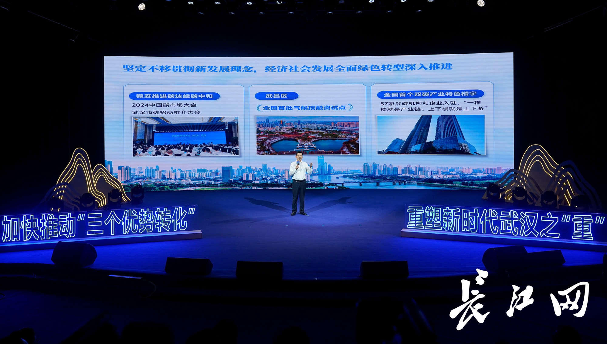 9月23日,武汉“加快推动‘三个优势转化’,重塑新时代武汉之‘重’”主题报告会生态环境专场举行,武汉市生态环境局党组书记、局长张朝辉作主旨报告。长江网记者彭年 摄