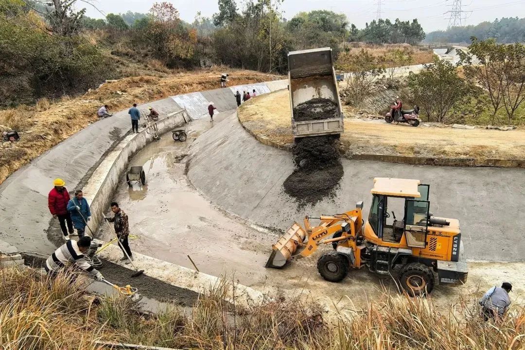 12月7日,在新洲区潘塘街李店村水渠修建现场,工人们正加班加点,全力推进工程进度,确保按时完成建设任务。不远处,大型机械轰鸣作业,挖掘机奋力挖掘,装载车往来穿梭,忙着拓宽并平整渠床,为接下来的闸门安装、溢洪道构筑及沿渠绿化带规划做好准备。岁末临近,武汉市新洲区举水灌区北干渠的工程项目进入冲刺阶段。