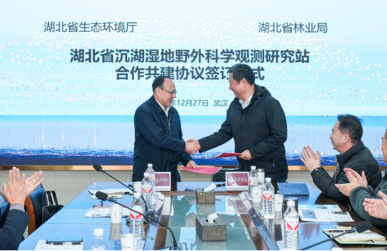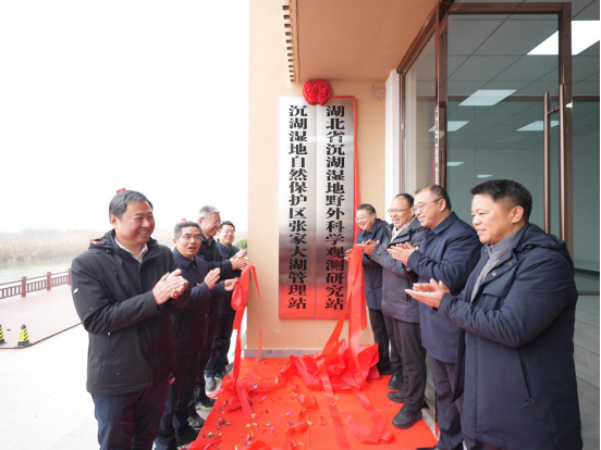 12月27日,湖北省生态环境厅与湖北省林业局共建的湖北省沉湖湿地野外科学观测研究站(以下简称“省沉湖湿地观测站”)揭牌仪式在蔡甸区沉湖湿地自然保护区举行。省生态环境厅一级巡视员郭新明、省林业局副局长张维、省科技厅一级调研员陈军云、蔡甸区政府副区长胡王莹、省生态环境科学研究院院长蔡俊雄,以及省生态环境厅、省林业局、武汉市生态环境局、市园林和林业局有关处室(单位)、蔡甸区政府及有关部门负责同志共50余人出席活动。