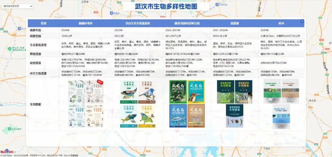在总结前期及今年工作的基础上,五套生物图鉴已汇集展示在《武汉市生物多样性地图》,通过武汉市生态环境局门户网站向公众开放。(https://hbj.wuhan.gov.cn/hjsj/ztzl/swdyMap/index.shtml)