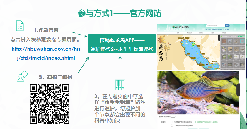 新增“探秘藏龙岛”APP,市民可随时用手机或电脑打卡藏龙岛生物多样性调查点位现场,在线巡护藏龙岛国家湿地公园,邂逅藏龙岛各类生物,见证藏龙岛湿地公园的灵动之美,将线下调查成果转化为动态科普资源。