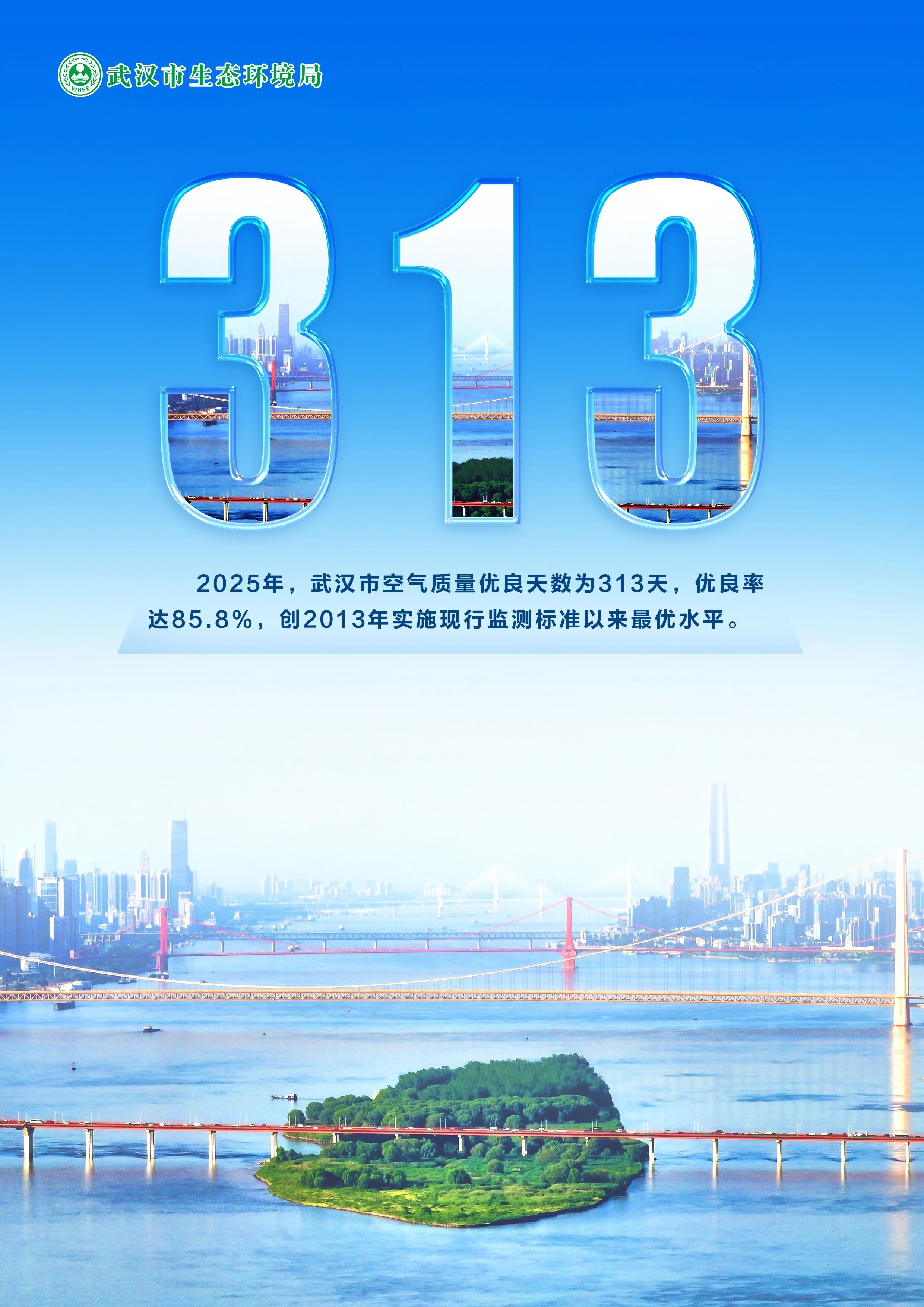 2025年,武汉的天空更蓝、更清透,武汉的星光更美、更闪亮。这一年,环境空气质量优良天数达到313天,优良率达85.8%,空气质量六项污染物指标首次实现全面达标。这份沉甸甸的生态答卷,让“武汉蓝”成为城市最动人的底色,市民推窗见绿、仰首见蓝的幸福愿景正一步步变为现实。