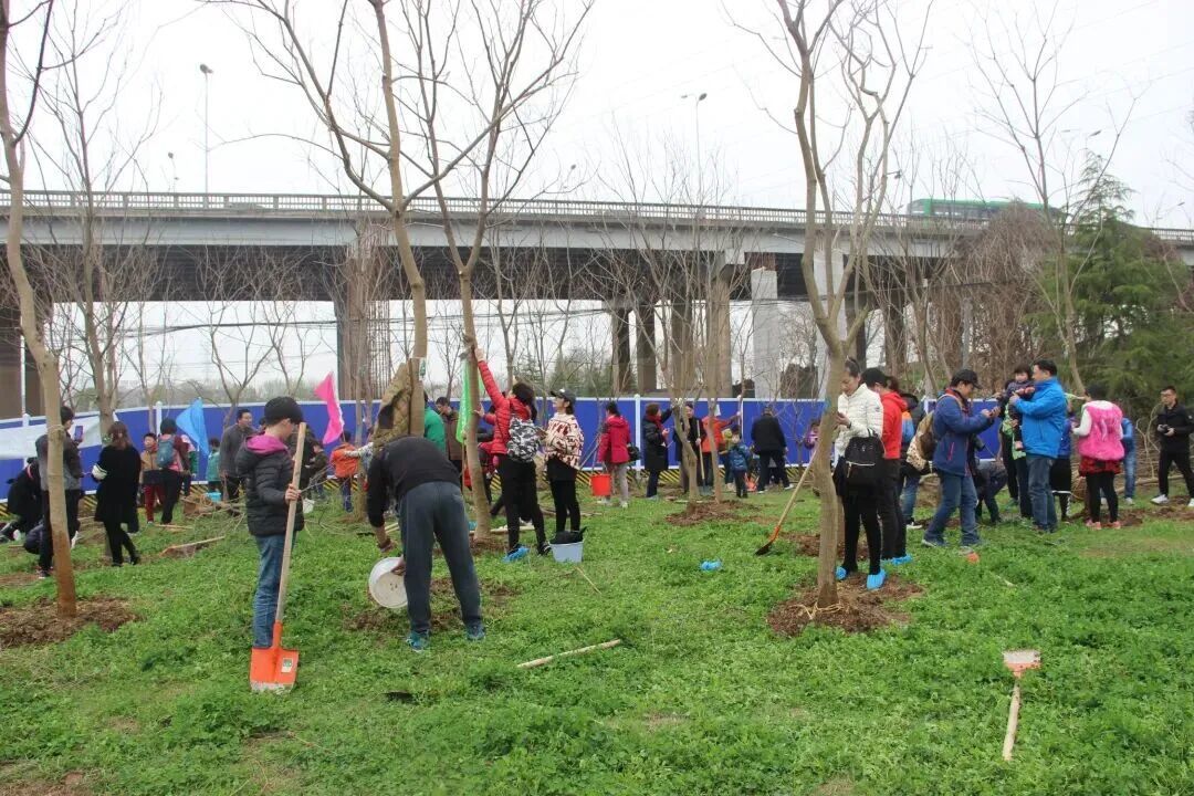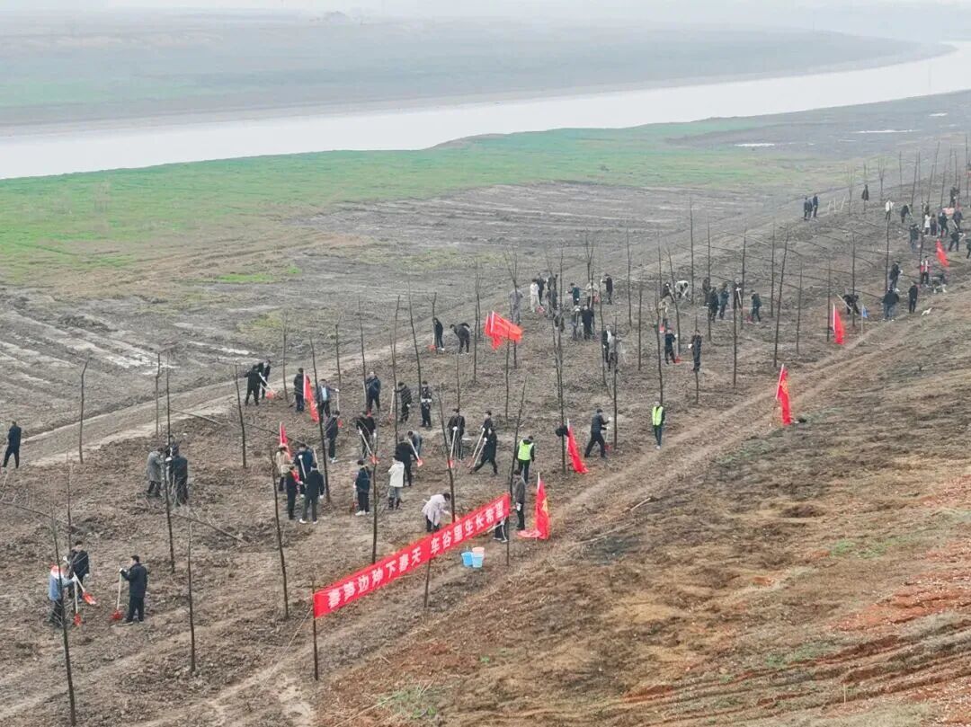 武汉经开区在通顺河新合堤南岸开展义务植树活动
