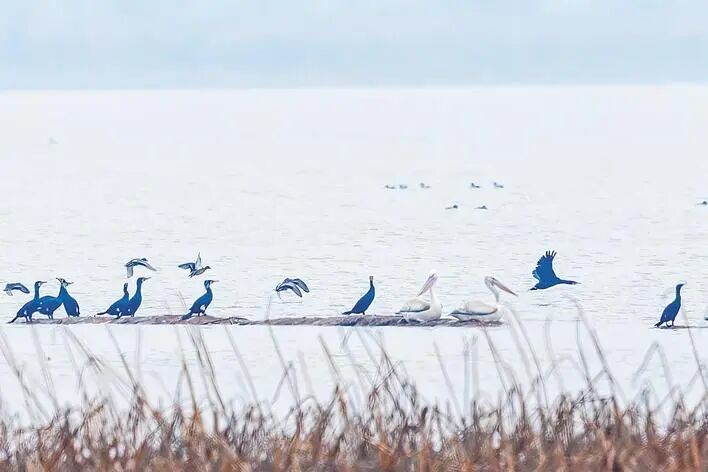 武汉沉湖湿地,卷羽鹈鹕神闲气定。 (湖北日报通讯员 魏斌 摄)